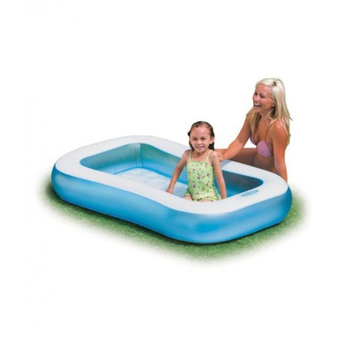 Children love to have fun in water and what better way than to let them enjoy in a miniature swimming pool! The Intex inflatable rectangular pool brings a replica of a real pool for use in the open space. All you need to do is place it in your garden or in the open terrace and fill it with sufficient water. Kids will enjoy bathing under the sun in a place surrounded by flowers and trees. The inflatable pool is an outdoor fun accessory which is easy to use. The make-believe pool is made of thick and durable blue inflatable plastic which makes it last long.
