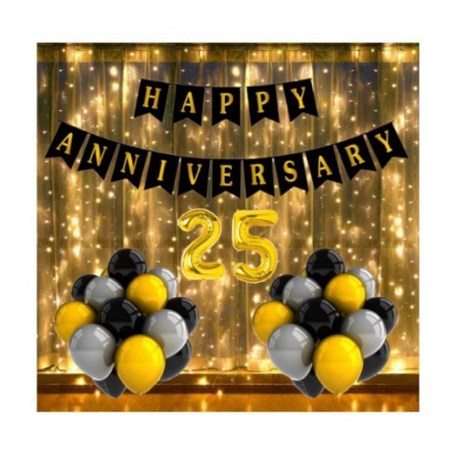 Shopyo Presents HBD Combo in which you will gets: Happy Anniversary Black Banner 30 HD Metallic Black , Gold & Silver Balloons\n 25 no. Gold Foil Balloons .This beautiful anniversary decoration balloon can be used for selfie.This super trendy decoration combo will create shine and glitter in your party . * 100 % high premium quality products *Easy to use and easy to carry * long lasting and kids friendly * Pocket saver and Attractive. * 100 % high premium quality products *Easy to use and easy to carry * long lasting and kids friendly * Pocket saver and Attractive.