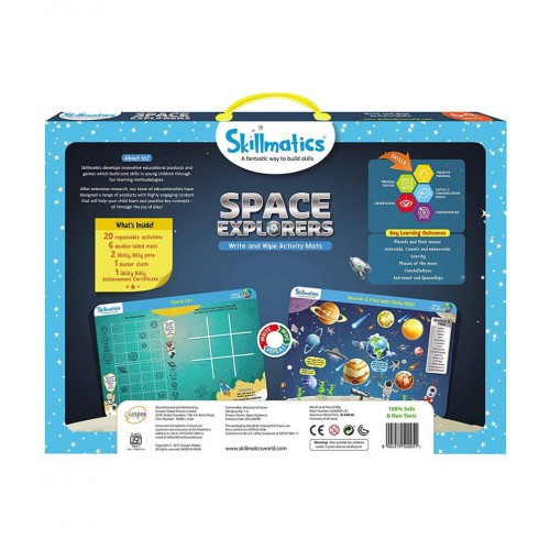 6 double-sided activity mats, 2 Markers, 1 duster, 1 Welcome Letter and 1 Achievement Certificate |