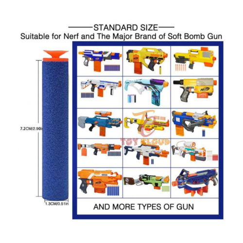 Toy Cloud refill bullet darts (7.1 x 1.2 cm) for any N-strike Elite Series Blasters guns and suitable for almost all of toy guns. These suction darts can stick to target with its suction power. Unlike ordinary bullet dart with solid tip, it is much entertaining as it gets ticked on the target. The bullet darts are compatible with any blaster toy guns that accept standard elite darts. It is also compatible with other kid toy guns that take standard form bullets. The refill darts are built with good tenacity. They can be used repeatedly. These bullet darts are non-toxic and made up of Eva Form Material which is completely safe for your lovely kids. This product is quality certified to be used by kids, and tested free of Lead, BPA and Phthalates. Dimensions (Each Bullet Dart) - 7.1 x 1.2 CM Very safe bullets which can also be launched to far distance. Easy to place, Keep fighting capacity. Made up of high-quality soft sponge foam plastic material with a hollow tip and an air-hole to soften the impact making it safe for the kids to play with. each dart is 7.2x1.2 cm. Toy Bullet Foam Dart Bullets. Kids of all age love shooting games and these foam dart bullets for your child’s gun games. Start practicing your aim! If you want to win the battle you better stock up on replacement darts. You can use these bullet refills with any N-Strike Elite Series that you have. Ready, aim, fire! Blast for distance on the battlefield with Elite darts. Dart Made of non-toxic and safe EVA foam, which ensures no real casualties, making it safe for children to use. Very safe bullets which can also be launched to far distance. The head of each bullet is made of plastic, please don't shoot at people directly to prevent hurt, especially do not aim at the people's face, to prevent injury to the eye. This dart refill pack will give you the leg up on opponents that you're going to want during the ultimate showdown.