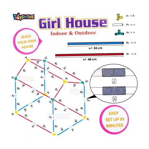 PROVIDES COMFORTABLE SHELTER: Your child will have hours of fun with this colourful home sweet home play tent. Set it up in the backyard, and kids will get a secret hiding place. It is great for encouraging play, adventure, and fun. It provides comfortable shelter for outdoor trips and activities.SAFE FOR KIDS: All materials are free from harmful chemicals, with100% Polyester fabric & Plastic pole, the portable kids play tent also easy to clean and dry quickly. Non-Toxic Paint, No Fade.DEVELOPS IMAGINATION AND CREATIVITY: This home sweet home playhouse will bring out the imagination of your child whether playing make-believe alone or role-playing with others. It will help develop social skills and really bring out the creative side of your child.EASY TO STORE: Extremely Lightweight, Water & Fire-Proof. The unique folding capabilities of this tent allow it to be taken down and stored anywhere in your home securely. It can also be packed easily and taken with you on special trips.IDEAL FOR INDOORS AND OUTDDORS: This kid home sweet home playhouse is incomparably versatile. apart from placing it in your house, you can also effortlessly set it up in your backyard, your garden, or any other outdoor space.Taffeta Material Cloth: This tent is made of Taffeta Material Cloth, which provide better finish over woven fabricsPROVIDES COMFORTABLE SHELTER: Your child will have hours of fun with this colourful home sweet home play tent. Set it up in the backyard, and kids will get a secret hiding place. It is great for encouraging play, adventure, and fun. It provides comfortable shelter for outdoor trips and activities.