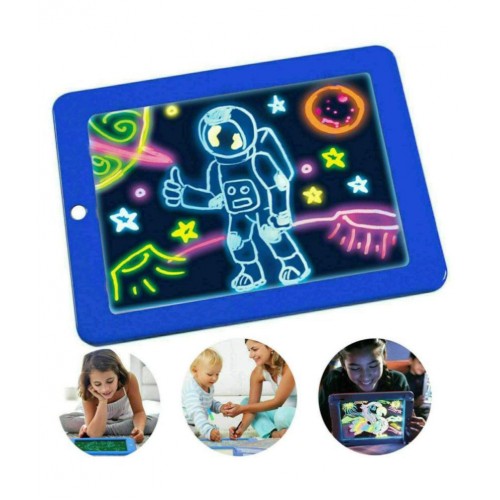 Toyshine Magic Pad Light Up LED Drawing Tablet with Stencils, 6 Neon Pens, Dry Eraser, Glow Card