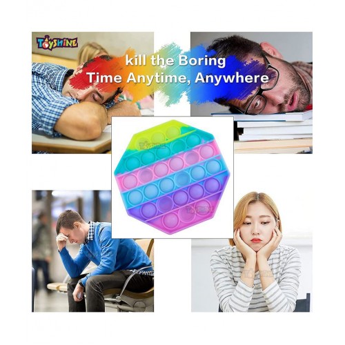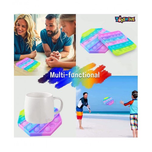 Toyshine Pack of 2- Octagone and Square- Fidget Popping Sounds Toy, BPA Free Silicone, Push Bubbles Toy for Autism Stress Reliever, Sensory Toy - Light Color Pop It Toy