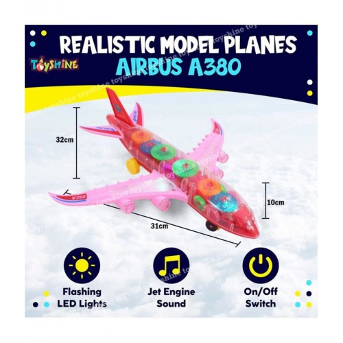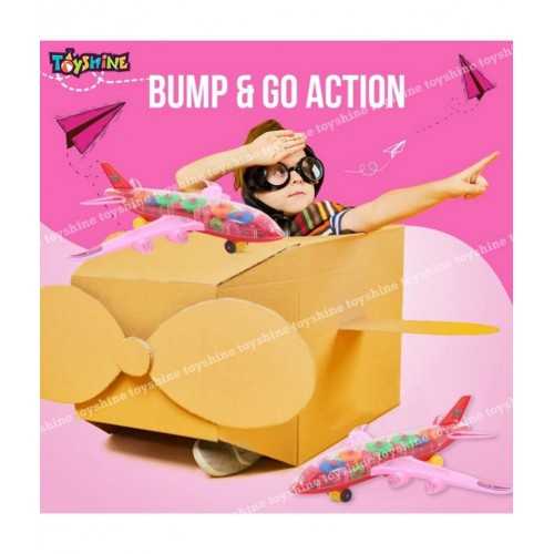 Toyshine Transparent Bump and Go Dreamliner Plane Aeroplane with 3D Lightning, Moving Gears and Music | Birthday Toy Gift for 2-5 Year old Boy, Girl, Baby (1 Pc)