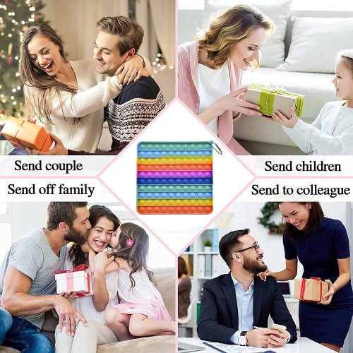 ✅【RAINBOW COLOR】2 Shape large Rainbow Push Pop Bubble Fidget Toy Unlike unicolor, rather dull push pop fidget toys, our pops come in 2 shapes square and heart with rainbow color, adding a fun splash to every pop! An excellent choice for kids and adults, these toys can be used as party favors, in goodie bags, conferences, stocking stuffers for kids and more!
