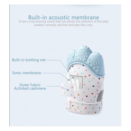 100% SAFE FOR BABIES & FOOD GRADE SILICONE – The BPA free material keeps your baby safe from all harmful bacteria, making it 100% safe. The extremely soft silicone is great for your newborn’s gums and has no smell. The advanced material we use is natural and comfortable to your baby’s delicate skin. SOOTHES CRANKY BABY: Designed to have soft silicone teething area to provide comfort to your cranky baby during the teething phase by relieving sore gums and promoting development of strong teeth. ADJUSTABLE STRAP : Teether strap can easily be adjusted to prevent from dropping it on the ground.You can easily adjust the glove teether as per your baby's wrist size.It is advised to check your baby's wrist size and compare it with the product's dimensions before ordering it. (The fitting of the product will depend on your baby's health) UNIQUE AND APPEALING DESIGN – The eye-catching, fun and bright color design visually stimulates babies and encourages visual and oral motor skills. Our built-in phonic membrane releases a crinkle sound, as if a candy wrapper was being opened when being chewed. The stimulating crinkle sound is something we’re sure your baby will love and will keep your baby entertained. EASY TO WASH : The teether which is made of silicone can be sterilized in warm water and gloves can be washed in warm and cold water. Please don't use boiling water to wash teether gloves.