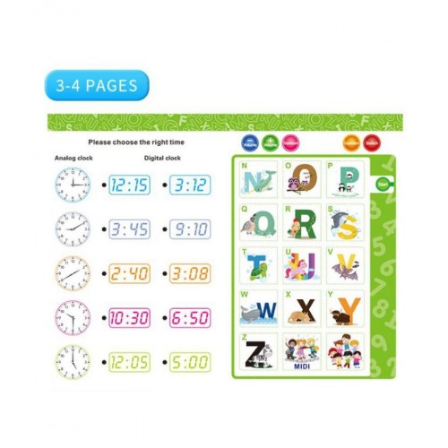 This books is an audio interactive Phonetic book which helps your child to understand the spelling and pronunciation better. The book consist of 20 pages with different learning subjects such as alphabets, numbers, fruit name etc. Press the On button to activate the fun. Every page has button. Presses the image or letters or the subject printed on the book and the sound of the alphabet, the word are played. Each button will surprise children and give children an enlightenment education. There are different buttons to operate the book. Children are always captivated with good music. The toddler can listen to music songs while reading this book. This is a complete and exhaustive preschool book for toddlers which includes all basic learning. Helps to build a robust vocabulary and offers a better parent-child playtime. Perfect for gifting to pre-schoolers and toddlers. The activities in this learning book are absolutely safe for the kid. This book is powered by 3AA batteries which makes this item safe to use.