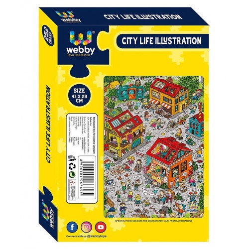 The Webby City Life Illustration Cardboard Jigsaw Puzzle, 252 pieces is specially designed with 252 unique interlocking pieces. So, you will not be able to fit a piece if it?s not at the correct position because of the unique shape of each piece. This jigsaw puzzle has been designed with alphabets 'a', 'b' printed on the back for different regions making it easier to solve for the first timers. The players can split the pieces as per region of alphabets and make puzzle solving faster. The size of the completed Webby City Life Illustration Cardboard Jigsaw Puzzle, 252 pieces is 43x29cms. This size is perfect for the intermediate puzzle solvers to be played on the floor or on the table. In the time when you cannot go out, spend hours solving this Webby puzzle all along with your family and friends. You will love playing with this puzzle having fun together. Increase the concentration and problem-solving skills with this jigsaw puzzle set. It also helps in improving the colour recognition, motor skills and hand-eye coordination of the children. Coming in a sturdy box, This puzzle is an exceptional gift for kids ages 6 and above. Round out the hands-on play experience and give kids an engaging option for screen-free fun. This puzzle has been proudly made in India with 100% customer.