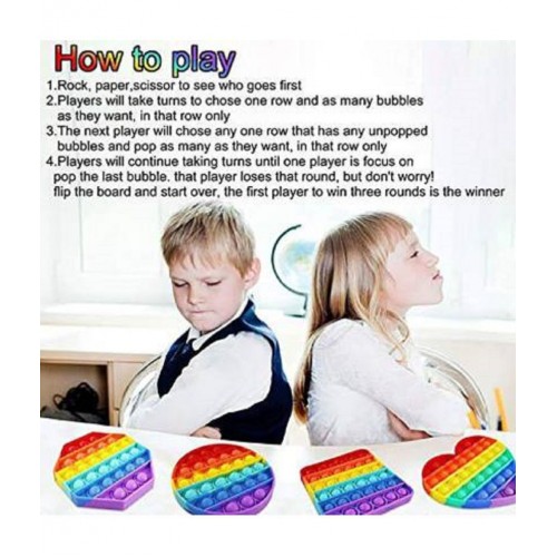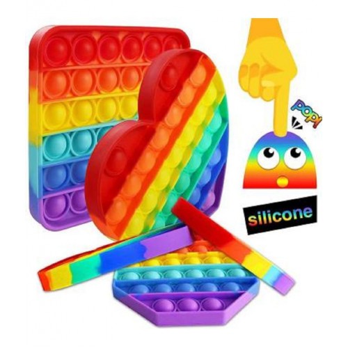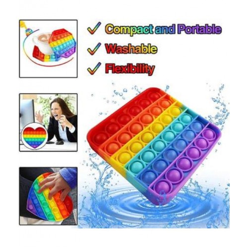Bright rainbow colours, square shape and funny popping sound can stimulate sight, hearing and touch and become one of the most valuable parent-child games. This silicone squeeze toy helps relieve stress, restore your mood, and creates a fun atmosphere. The sensory bubble toy is a perfect home essential. Decompression games suitable for all ages