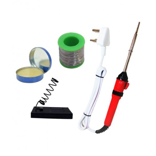 Our Brand, Ukoit; presents you this soldering kit including Red Indicator light Soldering Iron and its accessories. This 25 Watt Soldering Iron is for General Purpose use not for heavy duty works. It comes in light weight with 3-core power cord. Attains working temperature in a matter of few minutes. It has constant Tip temperature, Polypropylene handle for a better quality body and Low current leakage. 25 Watt Iron with Copper Soldering 25W Bit with Chrome Finish for Light Works and used for various purposes like home DIY soldering (hobby crafts), electronic projects, repair jobs (appliances, computer, cellphones, etc.) simple wiring of small appliances, educational projects (learning and practice soldering), development of simple electronic circuit boards, wire connections and reworks, workshops, etc. Durable elements but not for heavy industrial use. This is great kit having all necessary tools for beginners who wants to learn soldering or it's related work or projects. Best suitable for day to day soldering requirements. It offers a basic soldering experience and the most affordable and used soldering iron for the customers. It offers advance heating, ease of use and provide effective results to its users.