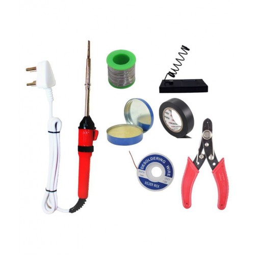 Ukoit (7 in 1) 25 Watt Soldering Iron Kit including Light Indicator Red Soldering Iron, Soldering Wire, Flux, D-Wick, Iron Stand, Cutter and Tape