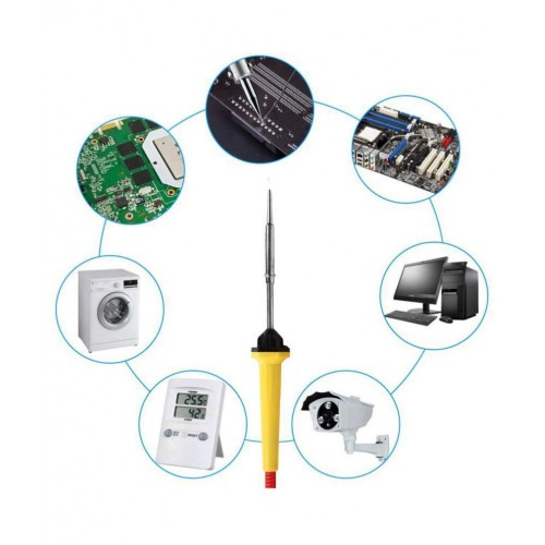 25 Watt Soldering Iron for General Purpose use not for heavy duty works. It comes in light weight with 3-core power cord 1.5 meters. Attains working temperature in a matter of few minutes. It has constant Tip temperature, Polypropylene handle for a better quality body and Low current leakage. High-Quality 25W Iron with Copper Soldering 25W Bit with Chrome Finish for Light Works and used for various purposes like home DIY soldering (hobby crafts), electronic projects, repair jobs (appliances, computer, cellphones, etc.), simple wiring of small appliances, educational projects (learning and practice soldering), development of simple electronic circuit boards, wire connections and reworks, workshops, etc. Durable elements but not for heavy industrial use. This is great kit having all necessary tools for beginners who wants to learn soldering or it's related work or projects. Best suitable for day to day soldering requirements. It offers a basic soldering experience and the most affordable and used soldering iron for the customers. It offers advance heating, ease of use and provide effective results to its users.