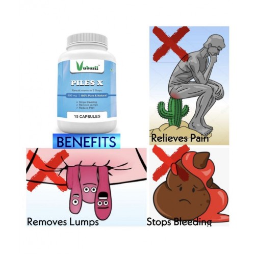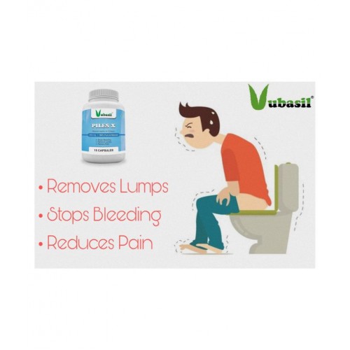 Piles, also knows as Hemorrhoids,impact as many as 50 percent of adults. VUBASIL PILES-X is a herbal piles remedy made from natural, clinically tested ingredients. These powerful ingredients encourage blood circulation while strengthening the vessels around affected area and provide real relief from hemorrhoid symptoms. The ingredients include Mesua ferrea linn. (Stamen) (175mg) Melia azedarach linn. (Stem Bark) (175mg) Azadirachta indica (Seed) (175mg) Berberis aristala DC. (Stem) (175mg) Kalmi shora (Whole Part) (100mg) . Vubasil Piles X reduces the pain, itching, swelling and bleeding that hemorrhoid sufferers face. Rather than working like an ointment or cream. EFFECTIVE RELIEF FROM ITCHING, BURNING AND BLEEDING: Piles-X Formula helps from the inside out increasing circulation and relieving itching, burning, and discomfort. It gets into the bloodstream to strike the hemorrhoid at its source. This medicine helps to remove lumps, stops bleeding and is very effective in curing piles. REPAIRS TISSUES: Piles-X is safe to use with hemorrhoid pillows, hemorrhoid creams, triguni herbal bavasir buti, nutree pure pilesaway,Himalaya Wellness pure herbs triphala, expertomind sitz bath tub or hemorrhoid cushion treatments. Piles-X capsules are also safe to use with hemorrhoid wipes, hemorrhoid suppositories, and hemorrhoid ointment. MAXIMUM RESULTS WITHOUT SIDE-EFFECTS: We use all natural and herbal ingredients with no side-effects. Our capsules are rich in Vitamin C, Iron, Zinc, Calcium, Copper and Potassium. Our special formula helps in getting rid of piles, which is a common problem in today's lifestyle. RELIEVES PAIN: Formulated with optimal dosages which help in quick healing of radiation burn and reduce pricking pain.