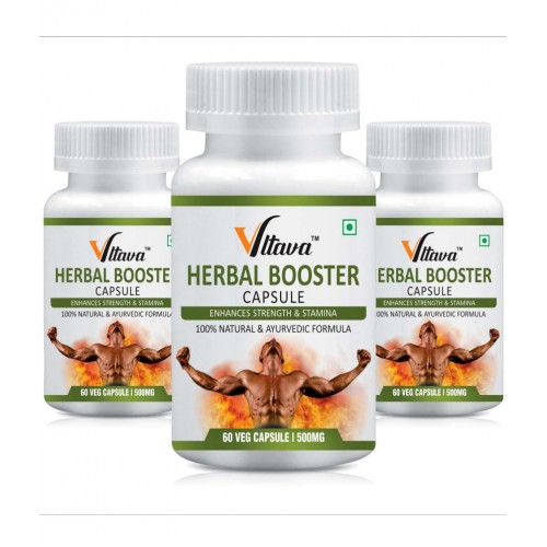 Vltava HERBAL CAPSULE | Real Strength for Men | Energy, Strength, Stamina | 180 mg Unflavoured Minerals Capsule Pack of 3