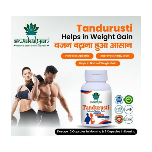 of weight gain without any side effects. Tandurusti for weight gain helps in the improvement of generalised body weakness and promote a healthy weight gain. Herbal energy capsules improves digestion, store good health, energy level & overall physical as well as mental health.