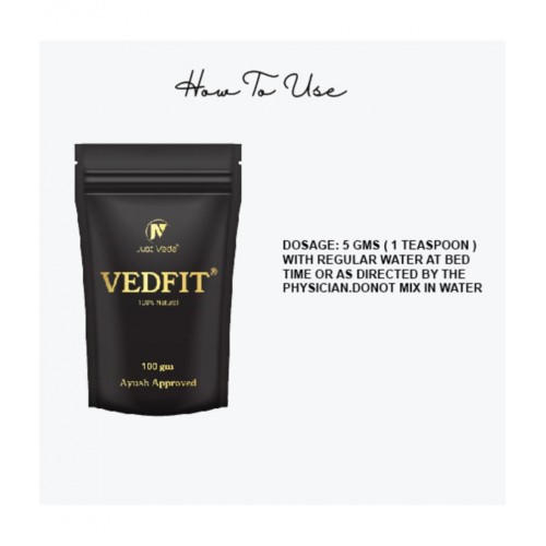 Justveda Vedfit 150gm DOSAGE: 5 gms ( 1 Teaspoon ) with regular water at bed time or as directed by the physician.Donot mix in water