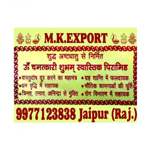 Swastika pyramid is an auspicious and holy symbol in Indian tradition and belief. It is a symbol of Lord Ganesha. The meaning of Swastika is to bring prosperity from all four sides. It is made up of Mixed Metals and pyramids are embossed on it. In Hindu Tradition and Ritual, at the beginning of any work, the swastika is drawn and worshiped. Pyramid combination with the power of Swastika gives double benefits and bringing lots of luck and prosperity, fortune and positive energy at home. You can fix it on the wall of your house entrance or room. It brings positive energy and good fortune in your room and life. It acts as the remover of hurdles and complications from your life